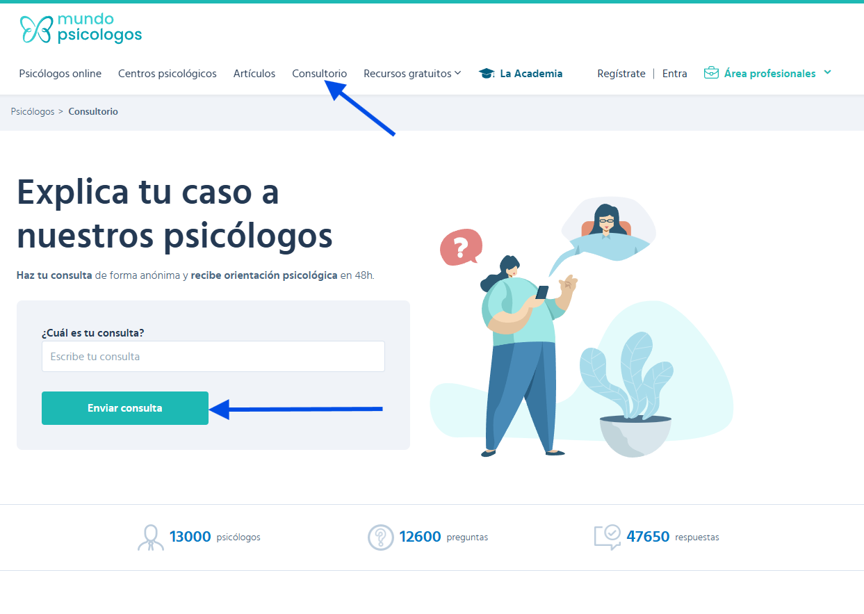 Debes acudir a la pestaña Consultorio y exponer tu duda, detallándola al máximo para que pueda ser resuelta por los expertos del portal. Recibirás un correo cuando los profesionales te respondan.