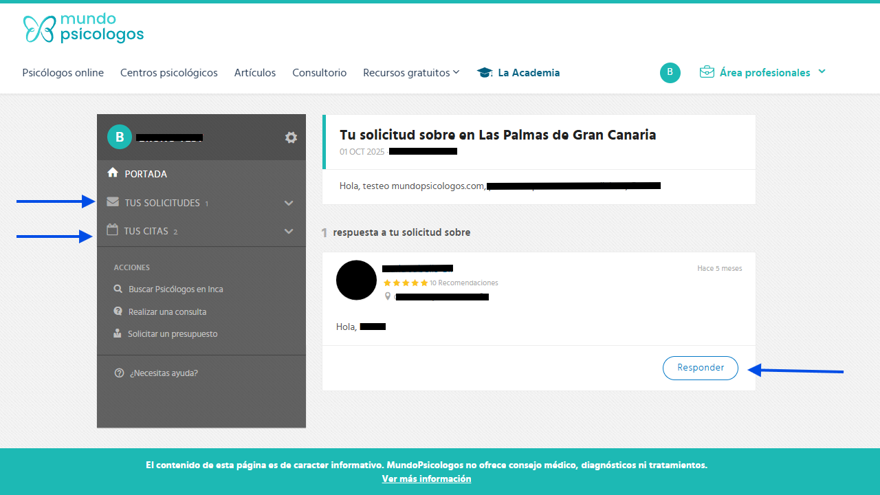 Si desea responder a un profesional que ha respondido a su solicitud, inicie sesión en su cuenta de usuario y diríjase a su espacio de usuario.