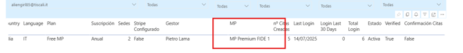 Dentro del informe hay un campo llamado MP, donde se indica si la cuenta está vinculada a Mundo Psicólogos.