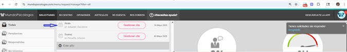 👉 Dirígete a la sección Solicitudes y haz clic en Gestionar Cita.