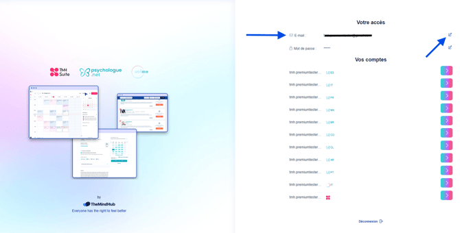 (Ce changement de mot de passe s’appliquera à votre accès au menu professionnel psychologue.net ainsi qu’à votre agenda TMH Suite.)