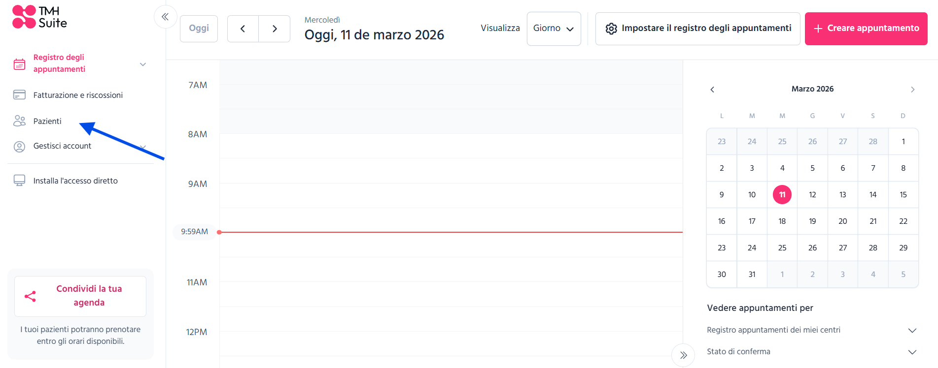 È inoltre possibile accedere all’elenco dei contatti dei pazienti direttamente dall’agenda di TMH Suite.