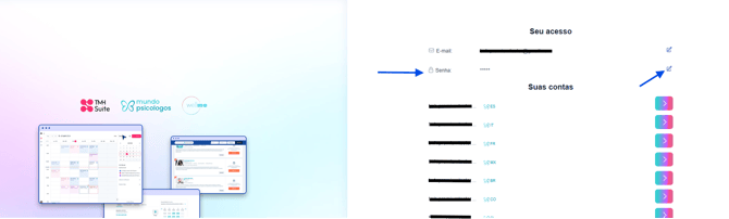 (Essa mudança de contrasenha será aplicada ao seu acesso ao menu profissional de psicólogo, assim como à sua agenda TMH Suite.) 🔐