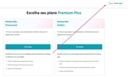 Se você ainda não tem um perfil, pode criá-lo pelo botão “Facer login” (no canto superior direito). Após se registrar como profissional, você poderá acessar os planos Premium.